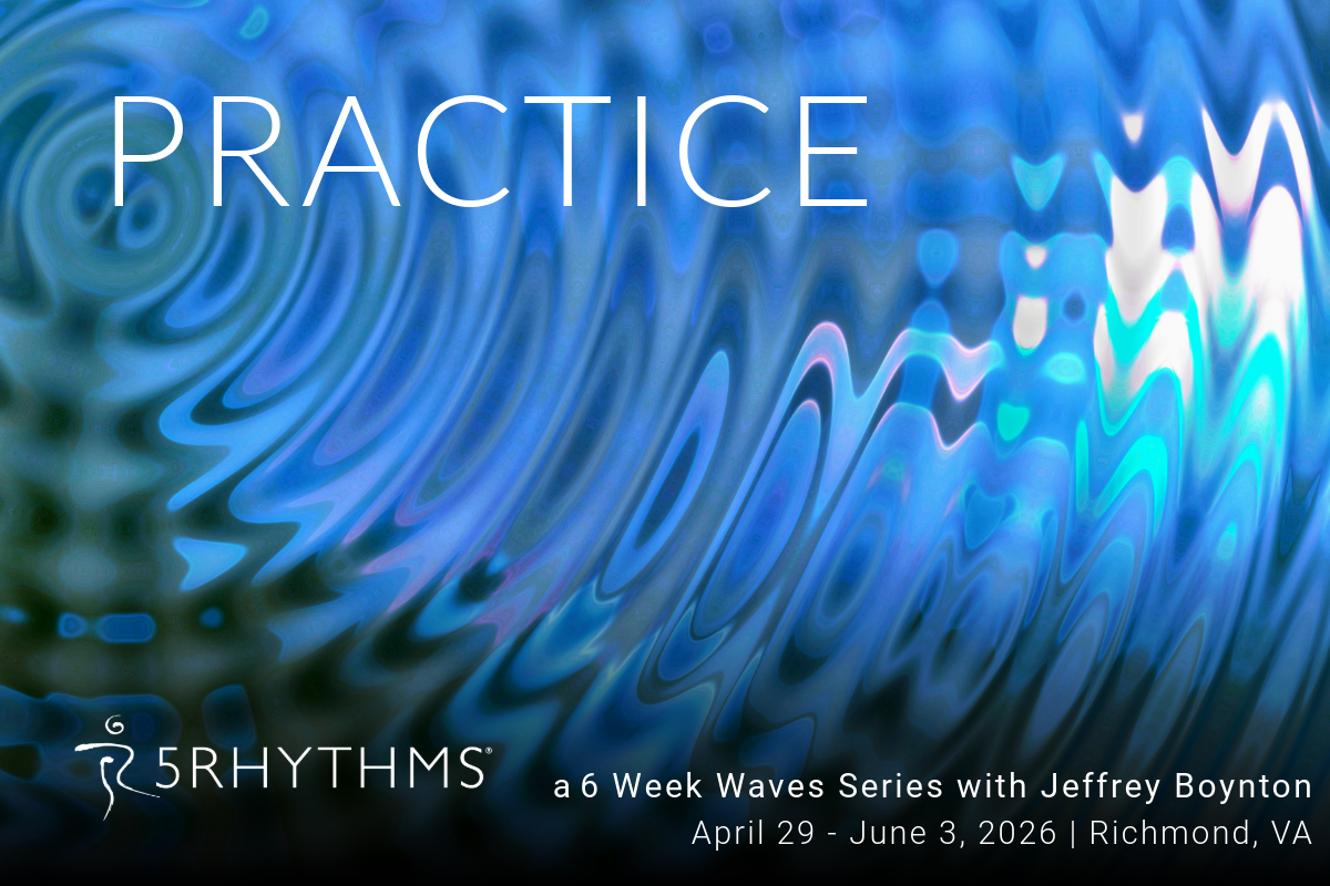 PRACTICE: A 6 Week 5Rhythms® Waves Series, which will be offered from April 29-June on 6 consecutive Wednesdays from 7-8:30pm at Richmond Movement Center.  This series will feature one night in each Rhythm - Flowing, Staccato, Chaos, Lyrical, and Stillness and will end with a Sweat Your Prayers class, where participants will have the opportunity to move through the Wave without spoken facilitation to ground their facilitated experience over the previous weeks in their own embodied wisdom.